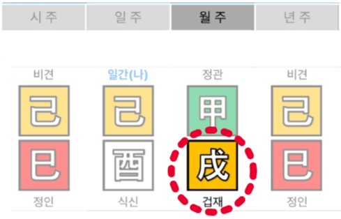 - 내 사주 팔자(↑위그림)를 보면 월지(두번째 줄 세번째)가 있습니다.