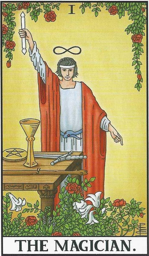 카드 의미 | 이 카드는 마법사 카드로 재주가 탁월하게 좋은 사람을 의미합니다. 짧은 영상으로 마술사들만 봐도 눈 깜짝할 사이에 뭔가 이루어지죠. 이처럼 이 사람은 손재주가 타고 났고 능력이 좋은 사람입니다. 그치만 자만심의 카드로도 해석이되요. 뭐든 잘하고 조금만 봐도 파악이 되고 해석을 해버리니 자만심이 있는 것은 필연적일 겁니다. 손은 하늘로 향해 있고 머리에는 뫼비우스 띠가 있어요. 이는 정신과 육체가 아주 조화롭고 머리가 영리하다는 뜻이에요. 붉은 꽃은 열정과 축복을 하얀 꽃은 순수를 말합니다. 탁자위를 보면 타로카드의 마이너 카드인 4가지 상징물이 나와있어요. 이 모든 것을 다룰 줄 아는 능력자를 말합니다. 노력도 열정적으로 하는 사람이라서 뛰어난 성과를 가질 수 있습니다. 정신적으로도 육체적으로도 뛰어난 사람이니 자신이 최고라는 생각을 안할 수는 없겠죠? 자칫 자만과 이기주의가 있을 수 있습니다. |