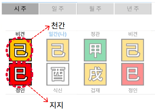 ➡️ 시주의 천간을 보면 노년운과 성취의 방향을 알 수 있어요! 🔍